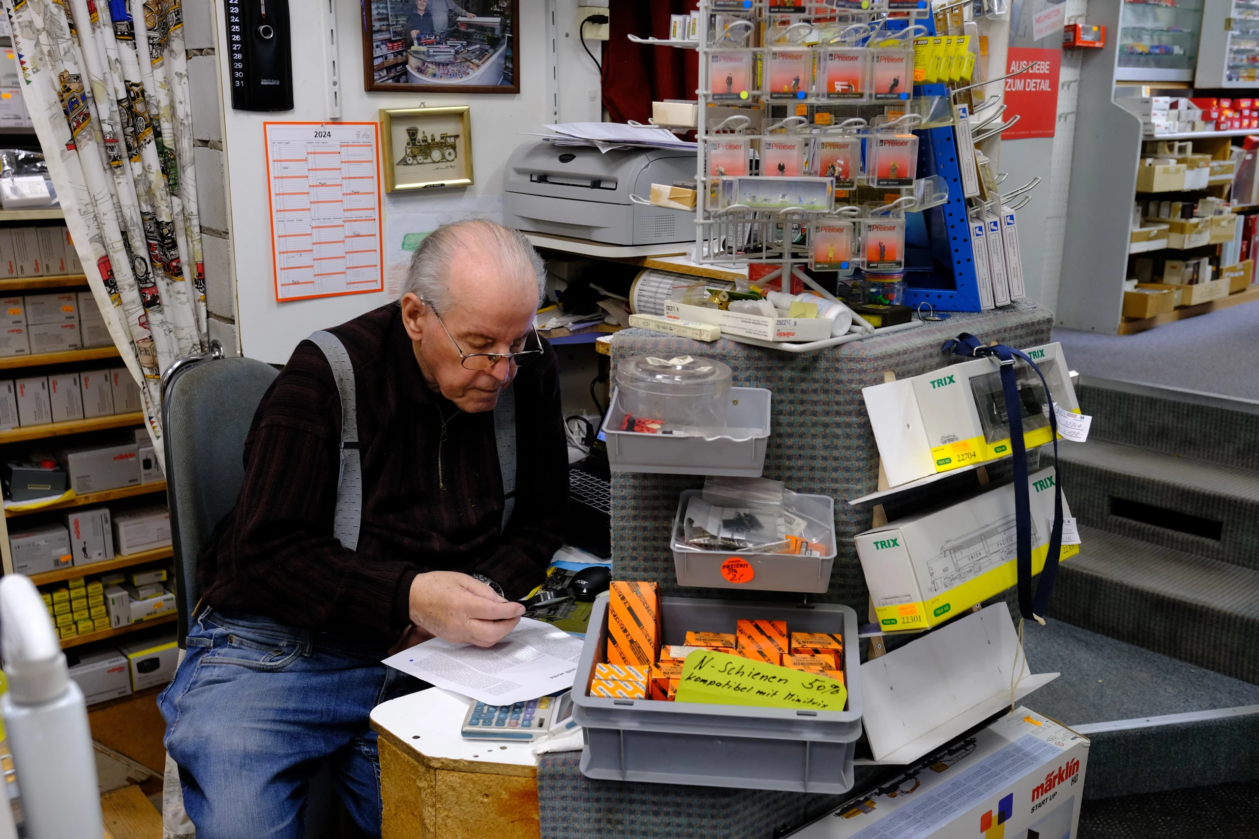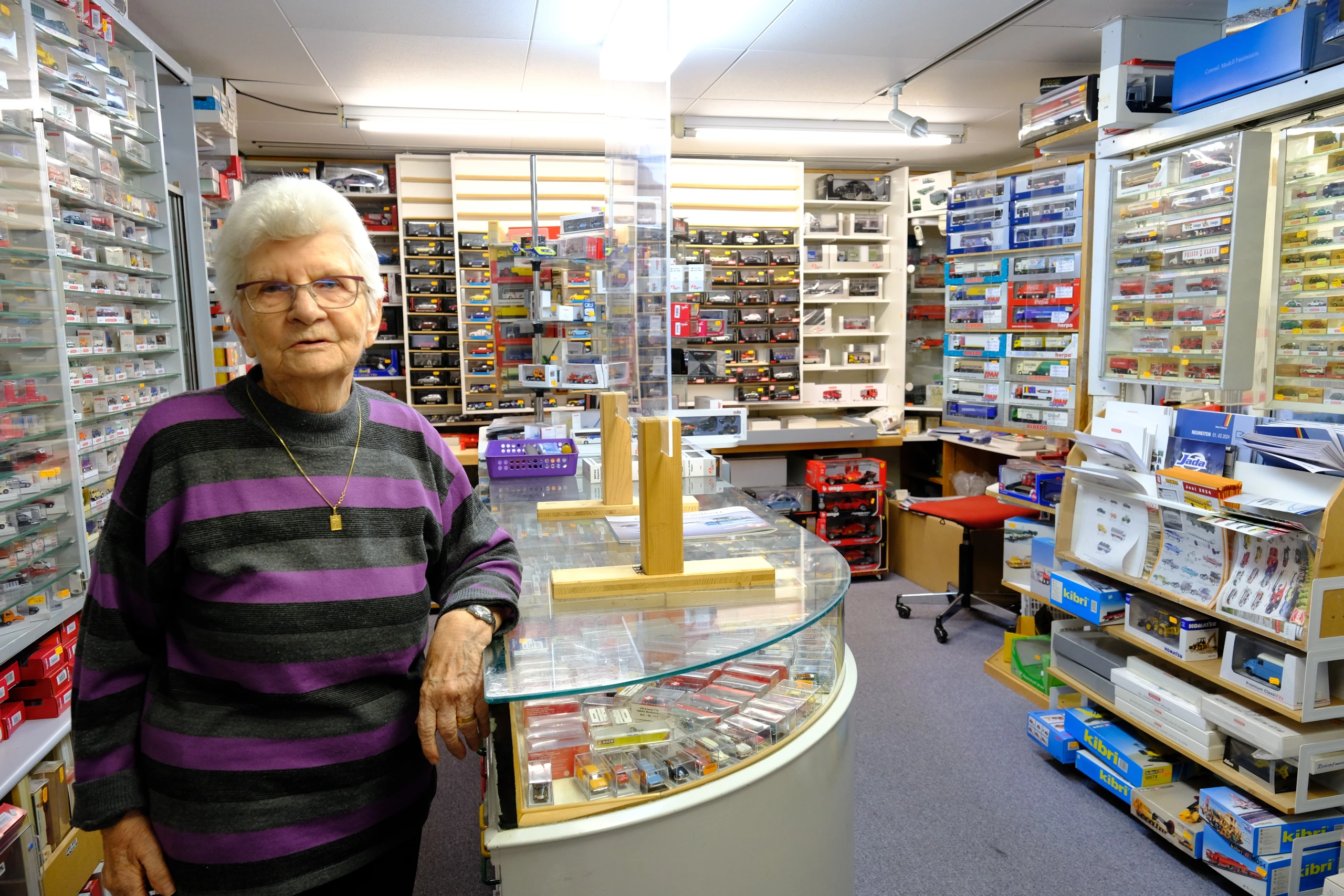 Alice HoferMan betritt den Laden und wähnt sich augenblicklich in einer früheren Epoche: Es riecht nach Vergangenheit, Abenteuerfantasien, Pioniergeist. In unzähligen Vitrinen und Regalen stapeln sich tausenderlei Modellfahrzeuge jeder Form und Farbe, plus Zubehör, künstliche Vegetationen und vielfältigste Figürchen. Es ist ein Paradies für Bastler und Tüftler. Und mittendrin stehen seit bald fünf Jahrzehnten fast täglich Marlen und Gottlieb Brunner. Seine erste Begegnung mit der Eisenbahn war 1941, als sein Onkel eine Uhrwerk-Loki ins Haus brachte, die jeweils nach zwei Minuten wieder aufgezogen werden musste. «So kam es schon mal vor, dass sie unter dem Sofa zum Stillstand kam», erzählt Brunner, von wo der 6-jährige «Godi» sie dann hervorkramte. Er war flink und hatte schon damals ein goldenes Händchen für Mechanik. «Als ein anderer Bub eine elektrische Modell-Eisenbahn geschenkt bekam, wurde ich gefragt, bei der Installation zu helfen; das konnte ich, ohne zu lernen, weil ich es einfach begriff». Und obwohl ihn die Fahrzeuge fesselten, hatte er nie den Bubentraum, Lokführer zu werden.